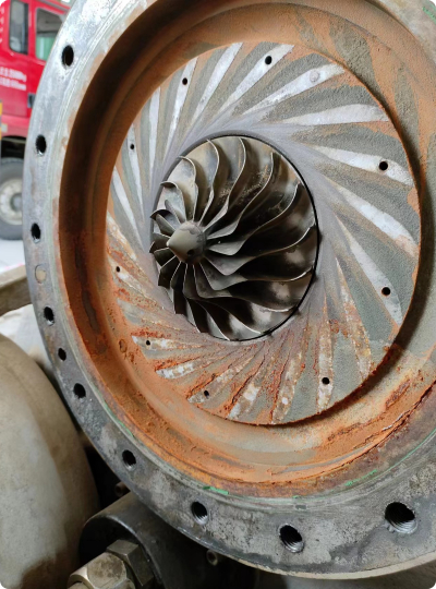 Cleaning, rust removal and corrosion prevention of impellers and guide vanes